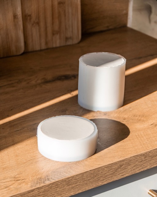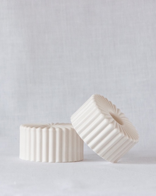 Jesmonite lässt sich außerdem einfärben, wie bei den Kerzensets Lilian und Vera zu sehen ist. Ob als Kerzenhalter, Schale oder Tablett, die Vielseitigkeit dieses Materials lädt immer wieder ein, neue Formen zu entdecken und Ideen weiterzudenken.