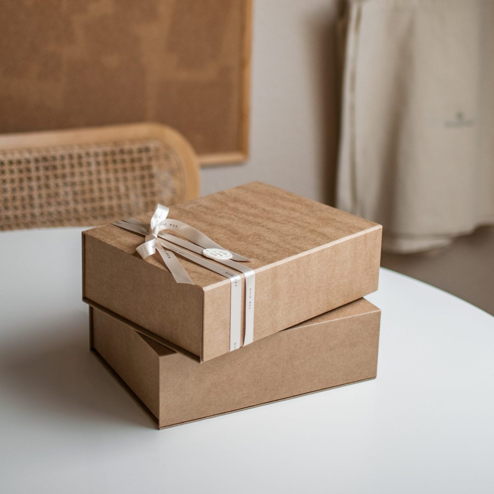 Die Verpackung besteht aus einer Magnetbox, nachhaltigem Füllmaterial, einem individuellem Geschenkband, sowie einem Wachssiegel. Das Geschenkset kann sofort verschenkt werden und benötigt keine weitere Verpackung.