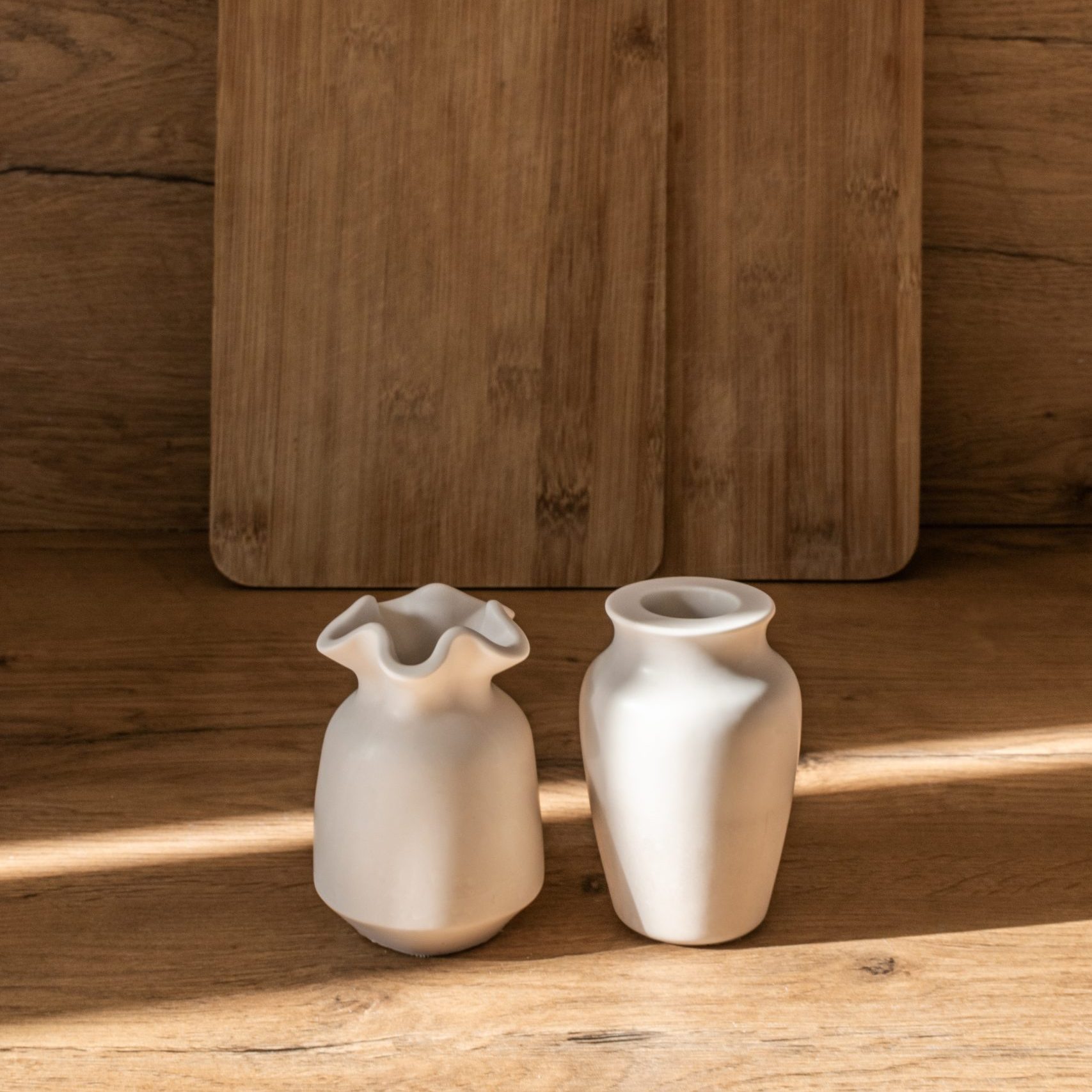 Während Die Viola Vase mit ihren weichen Wellen verspielt wirkt, bringt Die Adelia Vase mit ihrer klaren Silhouette Ruhe und Struktur. Gemeinsam bringen sie schlichte Eleganz und Zeitlosigkeit in dein Zuhause und schaffen einen Moment des Innehaltens.