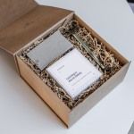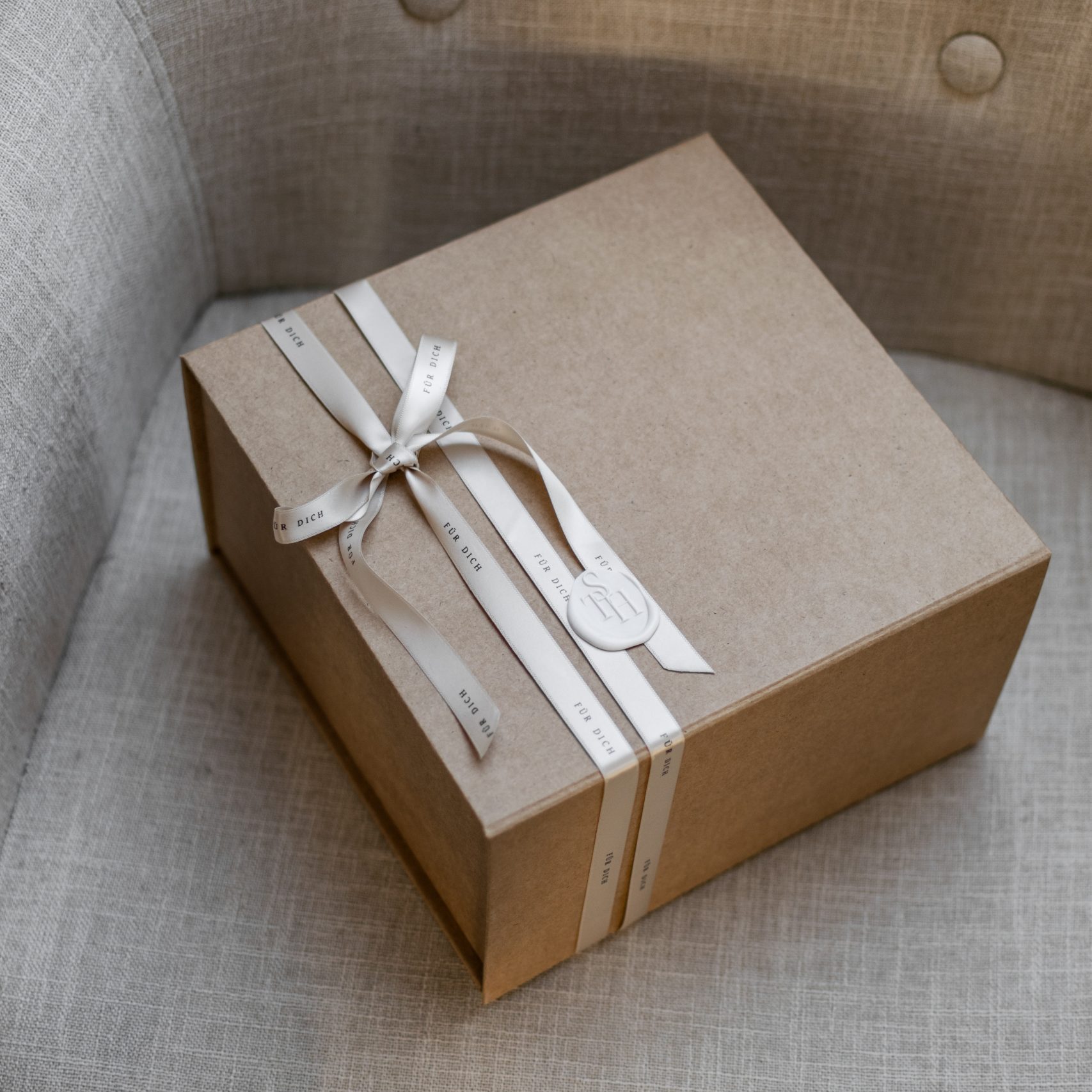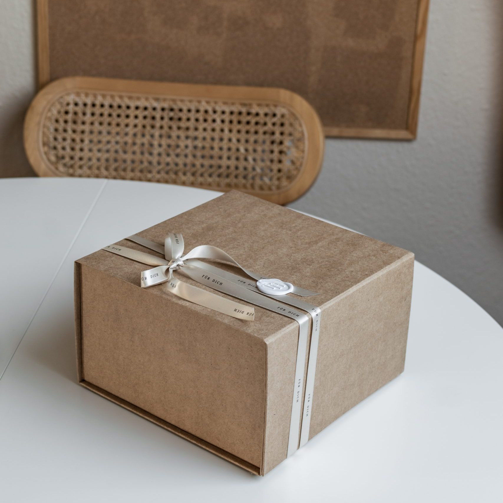 Die Verpackung besteht aus einer Magnetbox, nachhaltigem Füllmaterial, einem individuellem Geschenkband, sowie einem Wachssiegel. Das Geschenkset kann sofort verschenkt werden und benötigt keine weitere Verpackung.