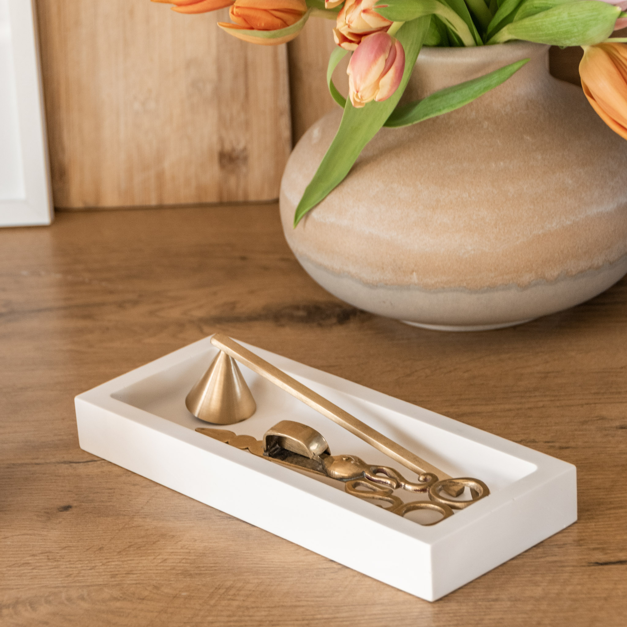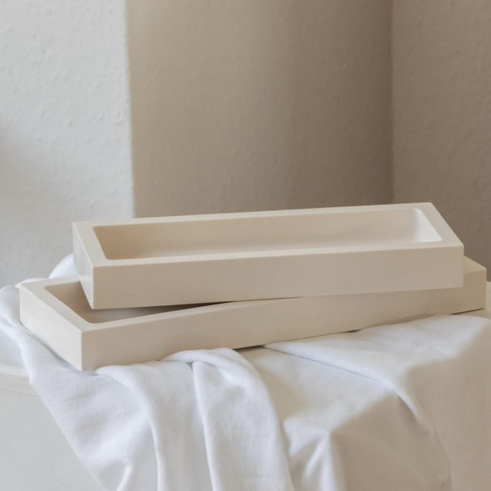 Das Linea Tablett ist ein modernes und funktionales Tablett, das in zwei Größen erhältlich ist. Es zeichnet sich durch sein schlichtes und geradliniges Design aus, das zeitlose Eleganz ausstrahlt. Die abgerundeten, innenliegenden Ecken setzen einen subtilen Akzent, der dem Tablett eine besondere Note verleiht. Die klare Formensprache des Tablet Linea macht es zu einem vielseitigen Accessoire, das sich nahtlos in verschiedene Einrichtungsstile einfügt. Dank seiner Breite eignet es sich perfekt zur Präsentation von Kerzen, wie beispielsweise unserer Liora Kerze oder der Skulpturkerze Rowena.